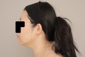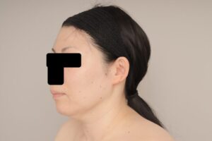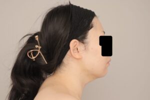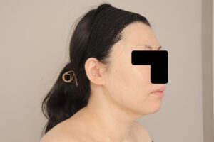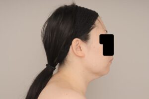 内出血はほぼ消失し、わずかに顎下が黄色いでしょうか。腫れや浮腫みはほとんどなく、むしろ術前よりすでにすっきりしてきているように見えますね。