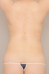 硬縮が始まっていますが、すでに術前より細くなっていますね。背面の吸引で、くびれの見え方が大きく変わっています。