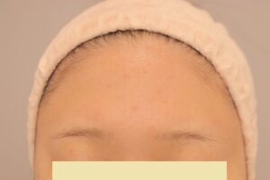 今回は162cm、45kgの20代モニター様のおでこの脂肪注入施術1年後のお写真となります。