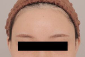 デザインとしては、眉上の骨ばったラインをなだらかにし、こめかみ〜おでこ全体にかけて自然な“まんまるたまご形”を形成しています。