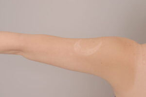腕のラインを根本から細く整える施術を行っています。