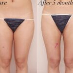 こちらは太もも全周+臀部+膝のお施術を受けられたモニター様の術前と術後2か月時点での比較写真です。