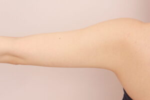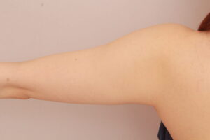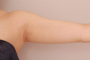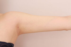 腕を水平に上げた際の皮下脂肪によるたるみが解消され、肘から脇にかけて一直線に近い、引き締まったラインになっています。