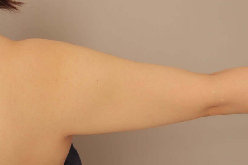 二の腕の脂肪吸引後に皮膚のたるむのではないかと心配される方が多いですが、意外と脂肪吸引のみでたるみがひどくなることはあまりないと考えています。