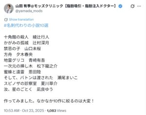 「名刺代わりの小説10選」というのを書き込まれていて、