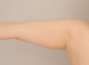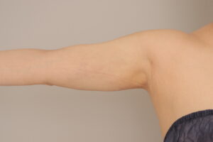 力こぶ部分を吸引すると、正面から見たときに脇の横のぷにっとしたところがなくなります。