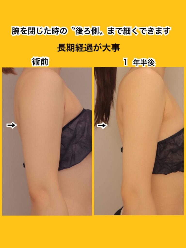 - 長期経過をお見せします。腕を閉じた時の〝後ろ側まで細くできます。〟~25歳156cm48kg上腕肩脇肉700cc吸引後1年半~(2026年2月4日)