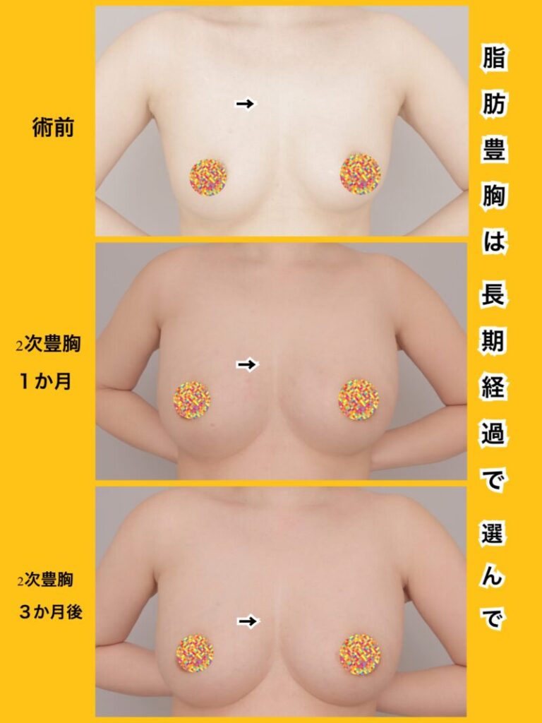 ~40歳162cm56kg脂肪豊胸(CRF豊胸)時系列2次豊胸後1か月3か月~