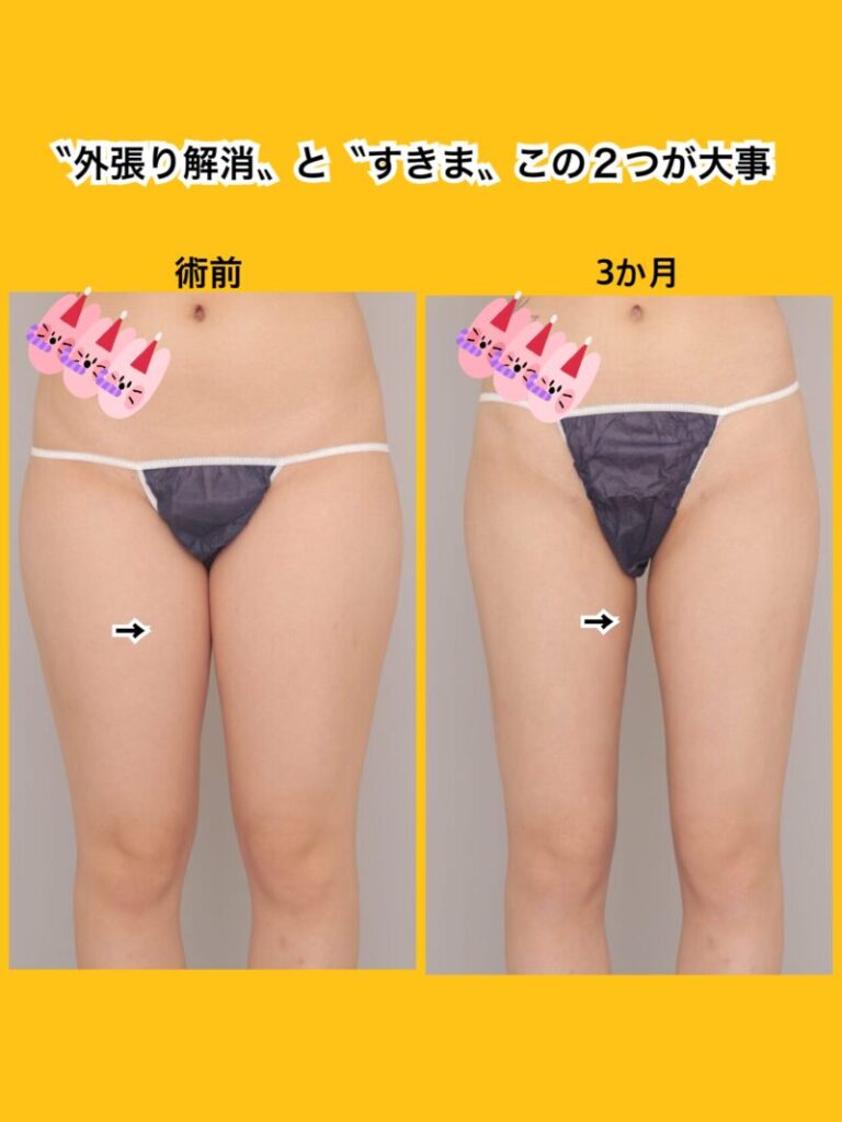 「内もも上部」の隙間にこだわる!ここに技術力の差がでます。~25歳156cm41kg太もも全周膝臀部1900cc吸引後3ヶ月~