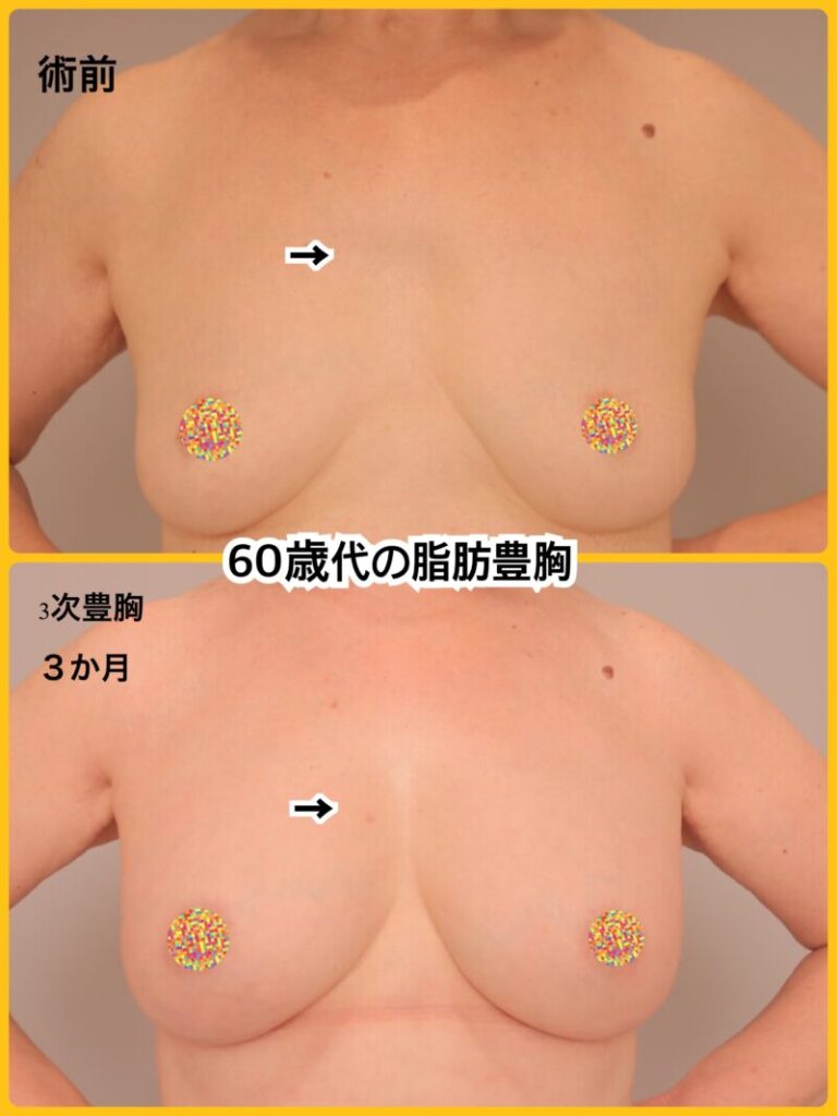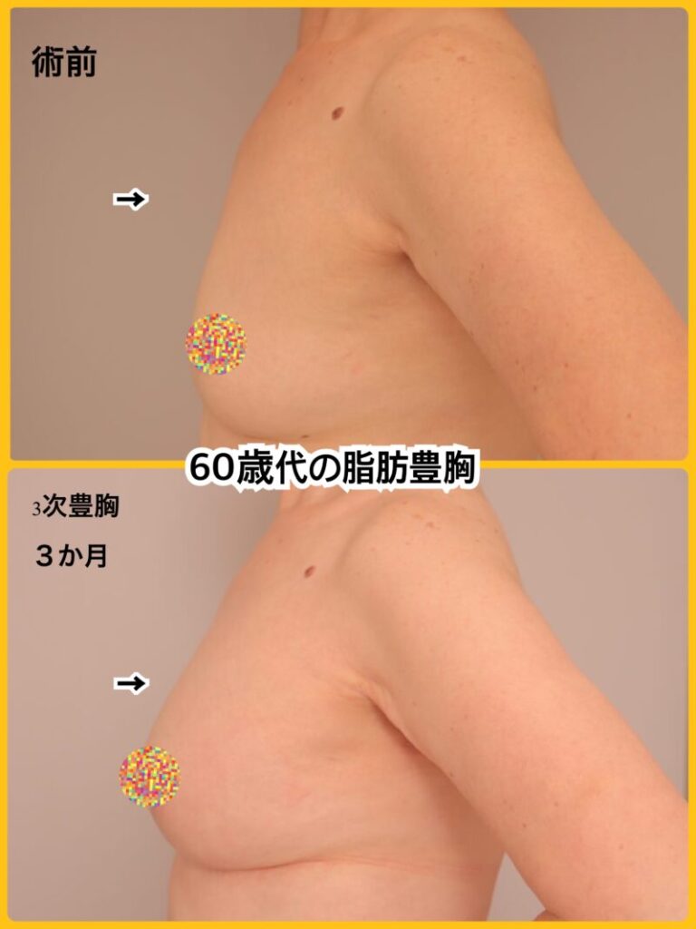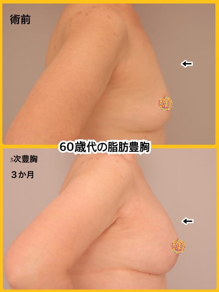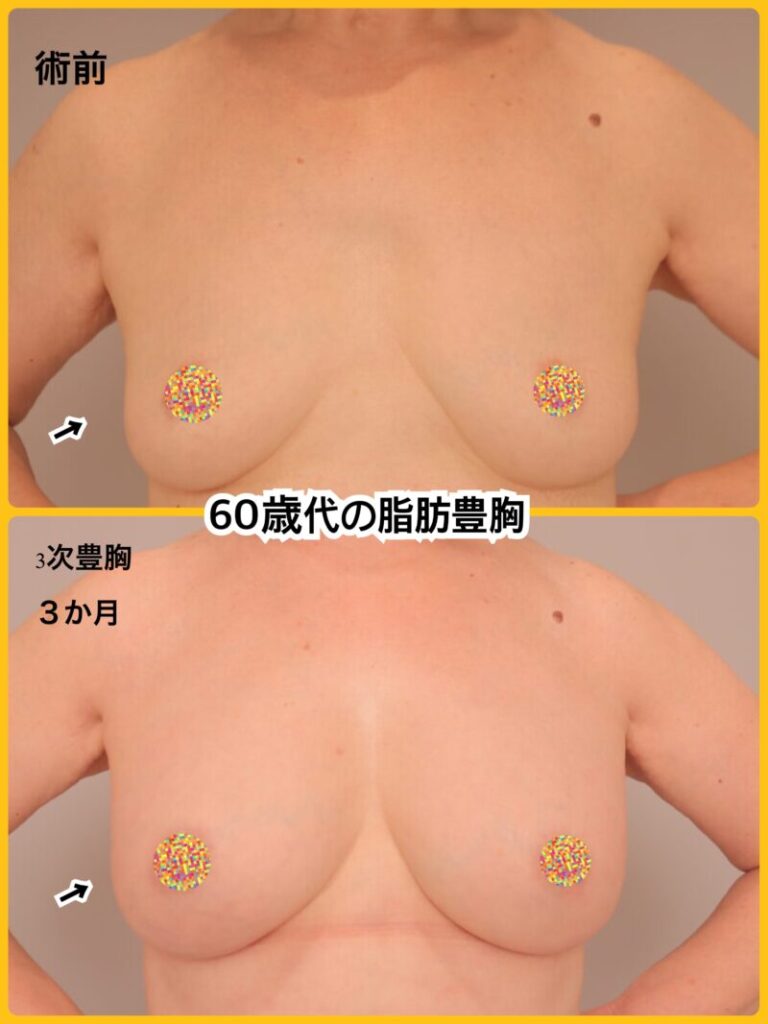 60代の脂肪豊胸。若返り脂肪豊胸お任せください!~64歳1601cm53kg脂肪豊胸(CRFバスト)3次豊胸後3か月~
