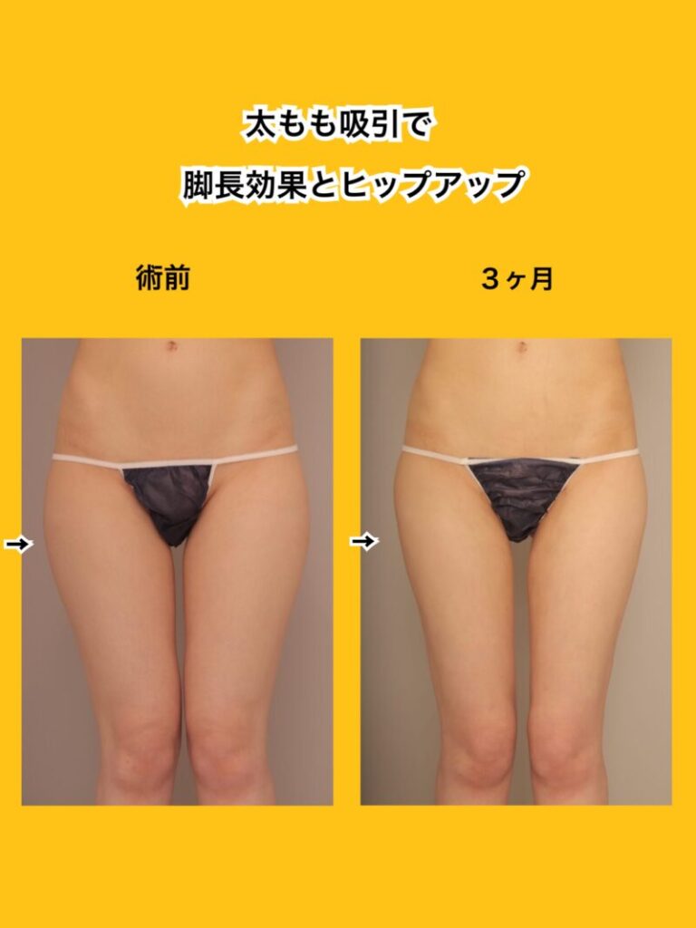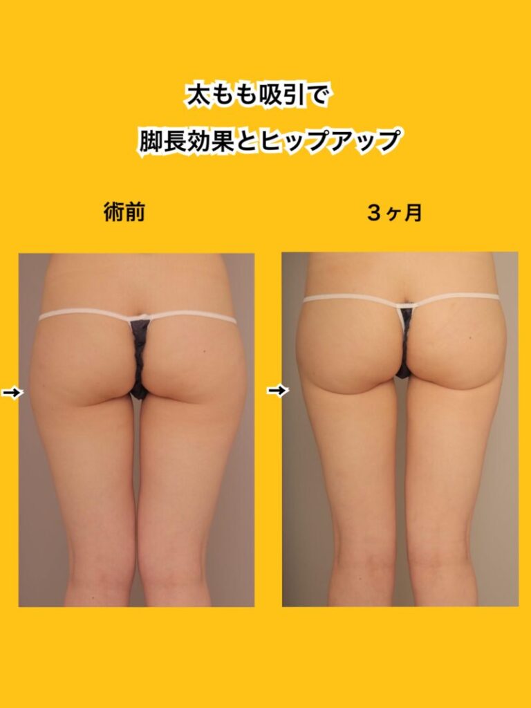 - 太もも吸引で、脚長効果とヒップアップもできます~27歳162cm48kg太もも全周膝臀部1700㏄吸引後3か月~(2026年4月4日)