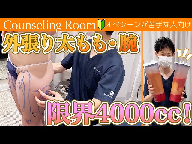 今回は太ももの張り出しと腕の幅間が気になる患者様、トータル4000ccオーバー吸引の様子をお届けします!