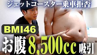 今回は135kgのBMI46の男性の脂肪吸引に密着してもらいました。過去最大級のお腹で、吸引した脂肪はなんと8,500cc!かなりしっかり取れて、術直後からお腹が小さくなったのを感じてもらえると思います。